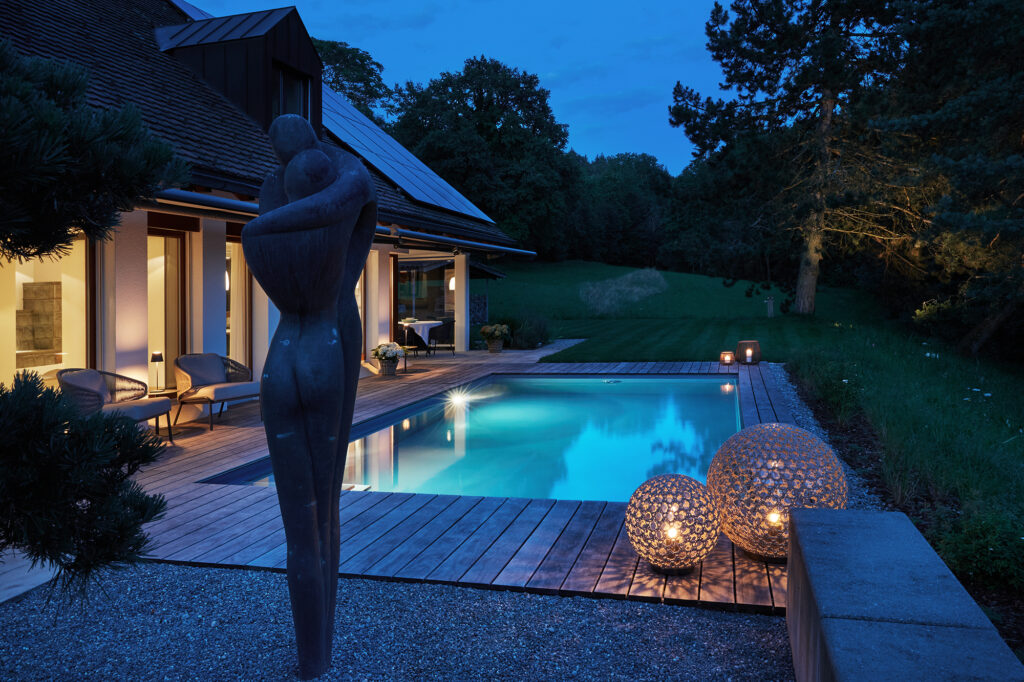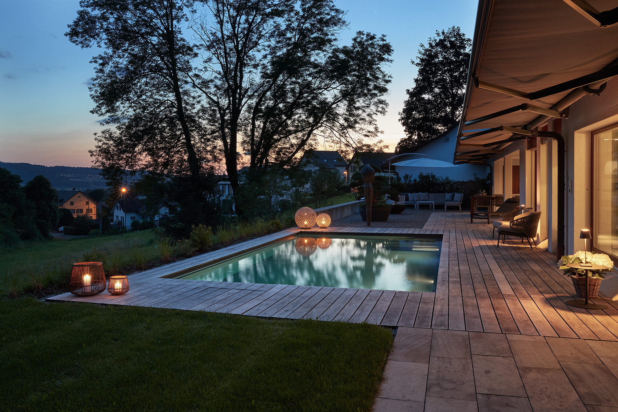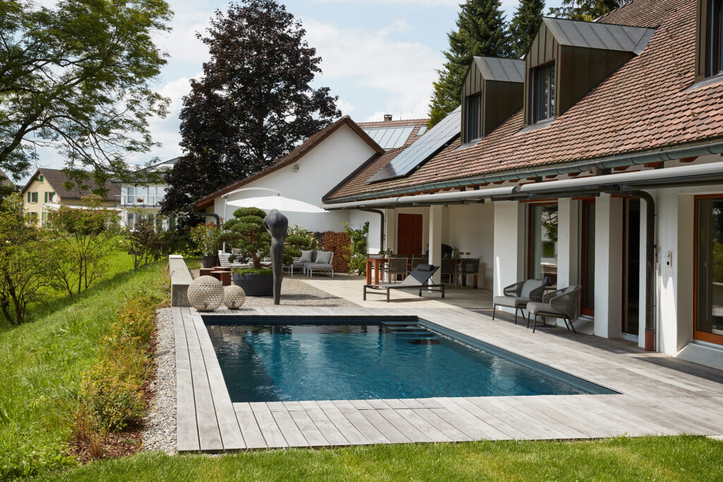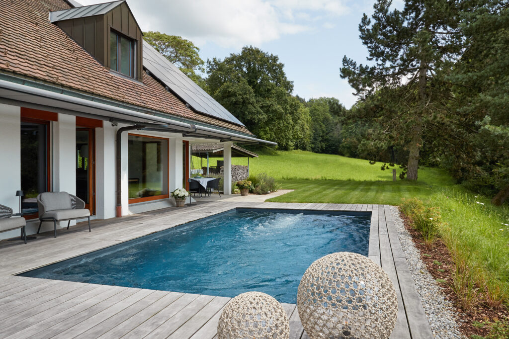 In Zusammenarbeit mit der Berner Oberländer Firma Allplast AG entstand dieser exklusive Pool aus hochwertigem Polypropylen. Moderne Technik, zeitlose Eleganz und durchdachtes Design fügen sich harmonisch in die Gartengestaltung ein.