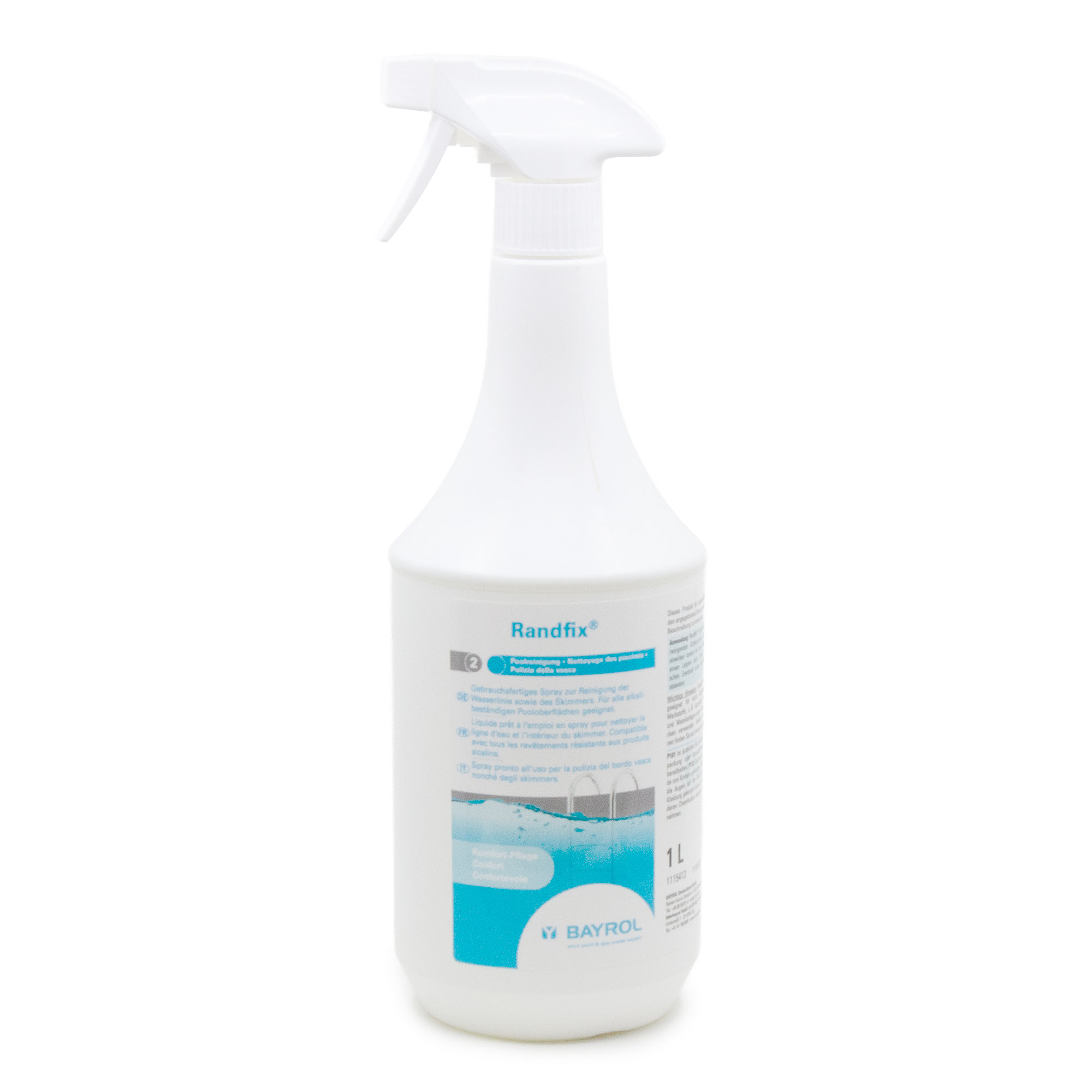 Randfix® entfernt leicht Schmutz – und Fettablagerungen an der Wasserlinie des Beckens und der Innenseite des Skimmers. Seine hochwirksame alkalische Formel entfernt fettige Verschmutzungen durch Cremes, Sonnenöle, Make-Up usw. Viele dieser Verunreinigungen, die mit Wasser nicht mischbar sind, lagern sich auf der Wasserlinie ab und hinterlassen eine sichtbare Spur.